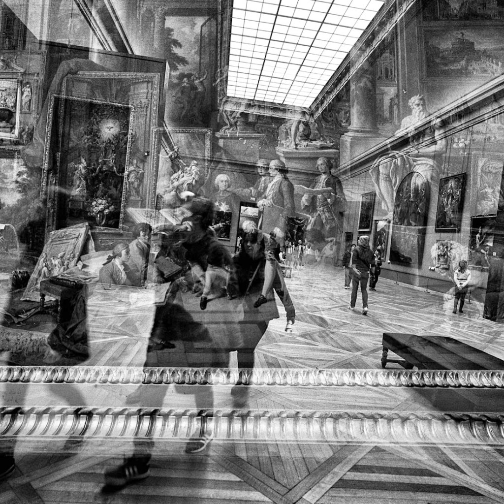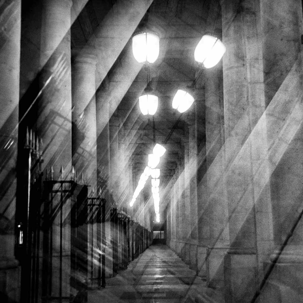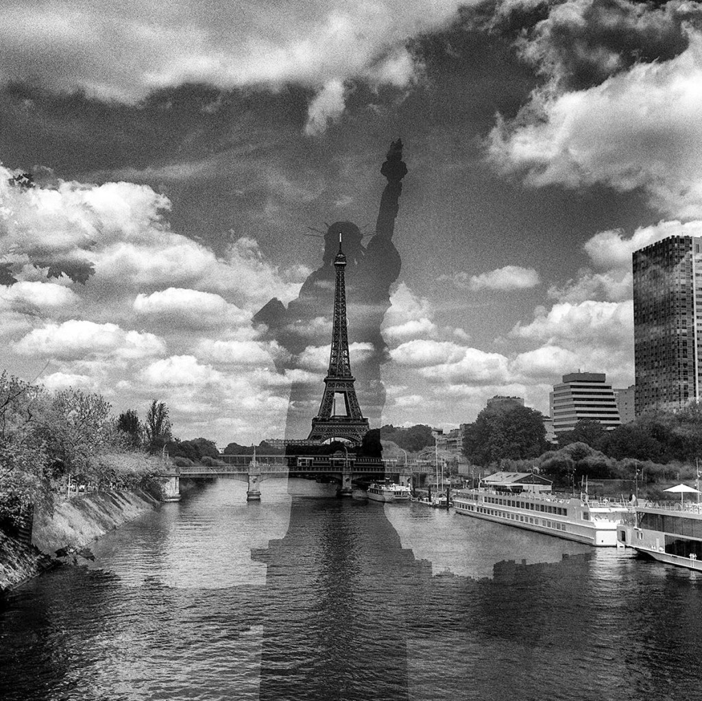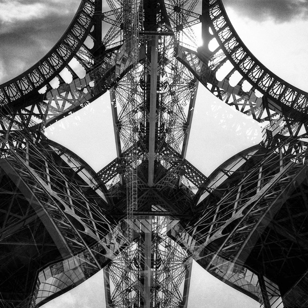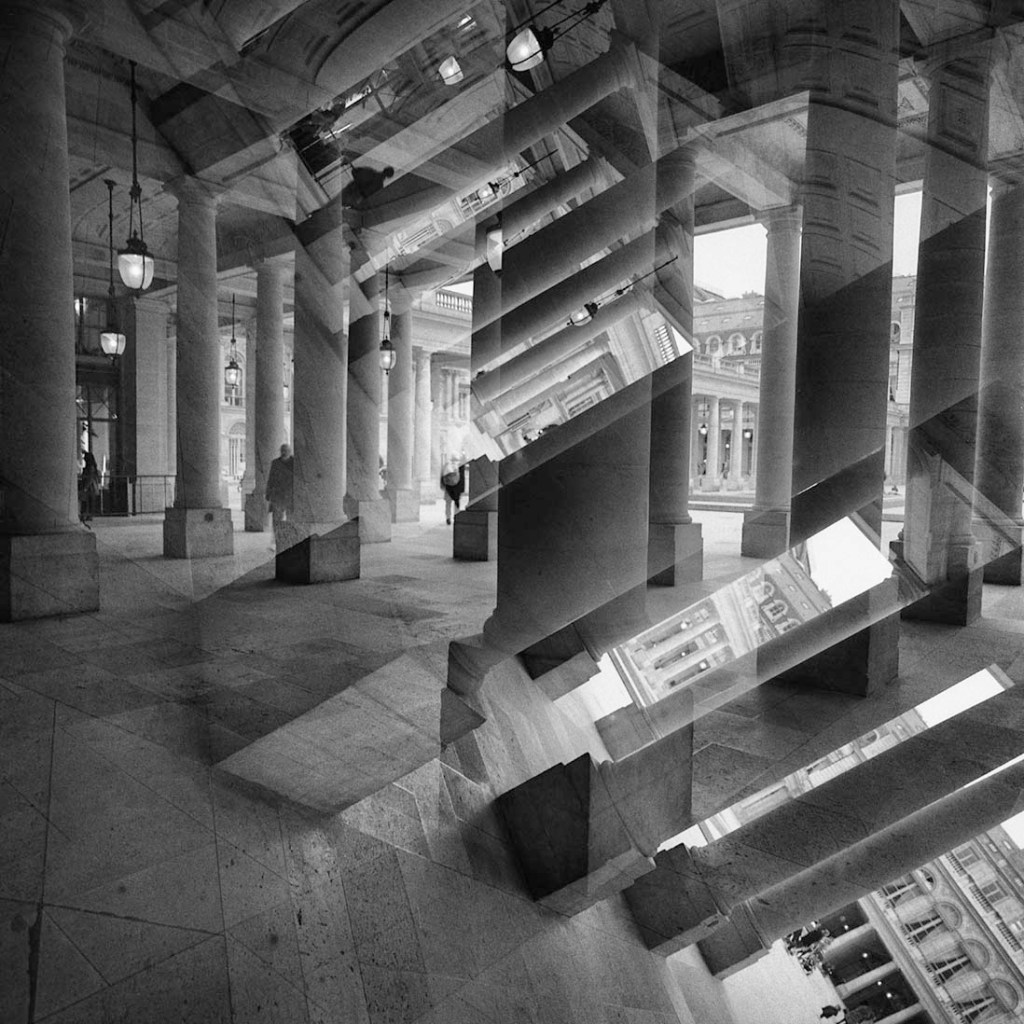 Avec mes doubles expositions il y a l’idée de jouer avec la mémoire instantanée pour mélanger deux impressions, deux graphismes en noir et blanc appartenant au même lieu. Comme si j’essayais de concrétiser un instantané de photo fiction que mon imagination aurait créé de toutes pièces. Pour moi, ce délire renferme une magie créative aux possibilités aussi infinies que fascinantes surtout dans un paysage urbain aussi riche que Paris. Quand la pellicule encore mouillée sort de la cuve, l’adrénaline est à son maximum car c’est là qu’on va savoir si l’imaginaire a rencontré le réel. Rares sont ces moments où on a le sentiment d’avoir réussi quelque chose là où tout pouvait vous échapper.